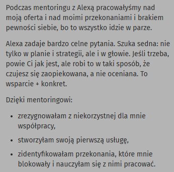 Dlatego w mentoringu budujesz wewnętrzną pewność siebie, spokój i poczucie bezpieczeństwa, które są niezależne od wyników.